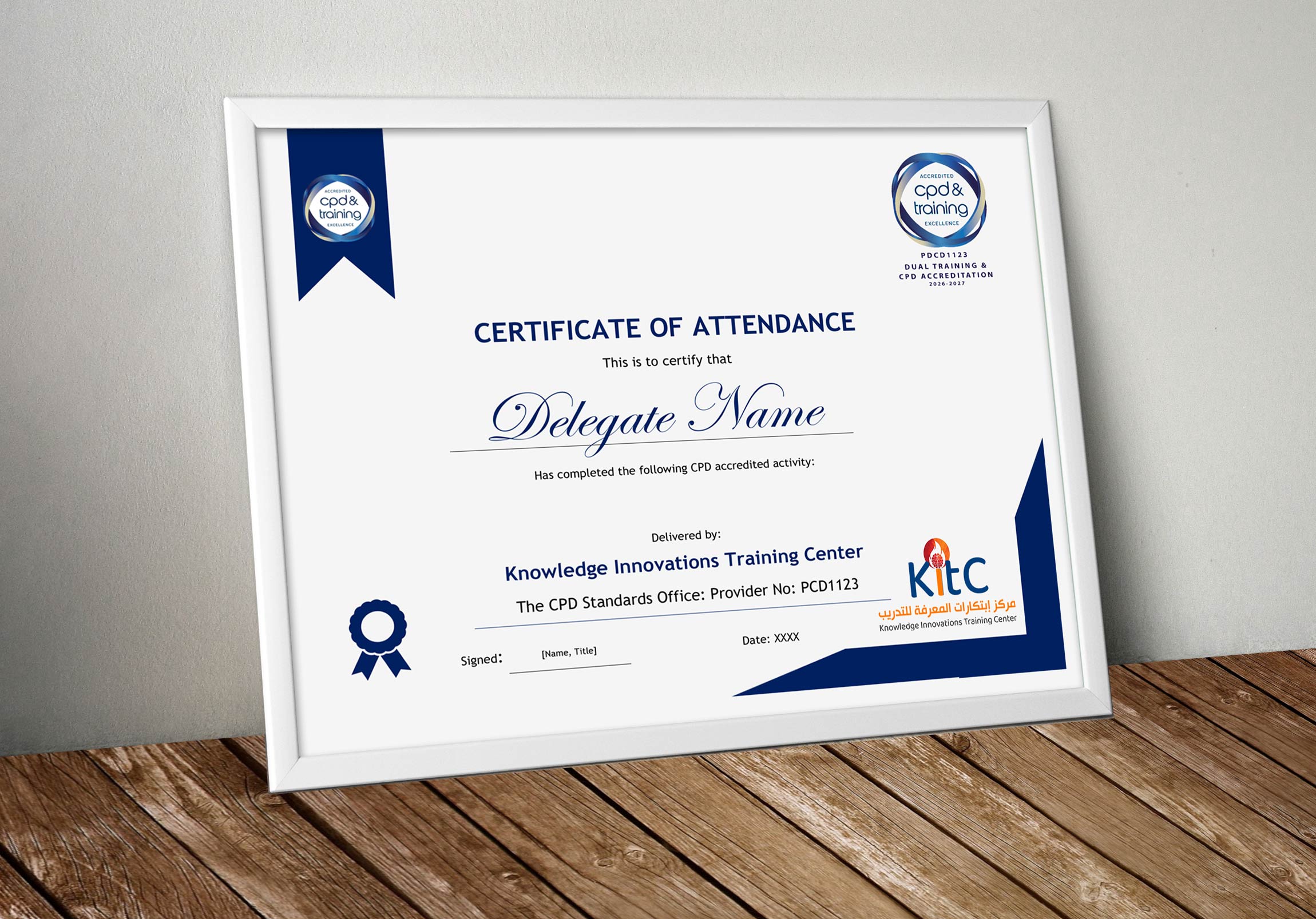 حصلنا في مركز ابتكارات المعرفه للتدريب بالدمام على وسام التميز والاعتماد الثالث دوليا" من قبل منظمة التطوير المهني البريطانيه المرموقه والمعروفه ب(CPD)، والمعنيه بالأداء المتميز في مجالات التطوير المهني المستمر والتدريب المعتمد.